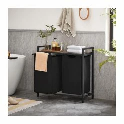 CALICOSY Panier Ă Linge Avec 2 Sacs En Tissu Oxford Noir Et Cadre MĂ©tal – L73 X H72 Cm