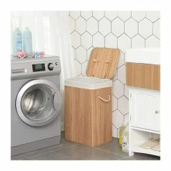 CALICOSY Panier Ă Linge En Bambou 3 Compartiments Avec Couvercle Et PoignĂ©es, 150L – L60 X H61,5 Cm